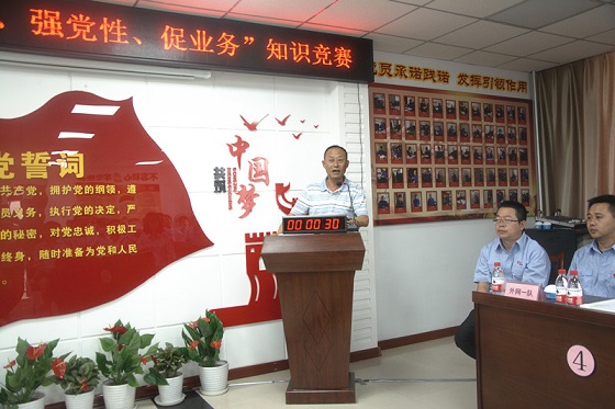 8月19日下午14:30,橋靠分公司黨總支部在黨員活動(dòng)室舉行了“守初心、擔(dān)使命、強(qiáng)黨性、促業(yè)務(wù)”綜合知識(shí)競(jìng)賽活動(dòng),旨在深入貫徹落實(shí)“兩會(huì)”精神,在分公司營(yíng)造起一個(gè)良好的學(xué)習(xí)氛圍。公司黨委副書記張永、工會(huì)副主席張智強(qiáng)同志應(yīng)邀參加。