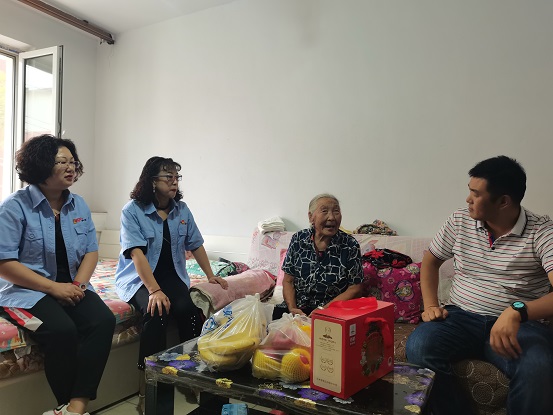 9月14日,部分黨員、干部再次來到85歲孤寡老人劉玉梅家中,為她送上月餅、水果等食品,并表示了節(jié)日的問候。