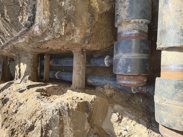 項目于9月30日正式開工,經(jīng)過日以繼夜的施工,按原計劃于10月14日完工。該段管道試運行過程中,不斷發(fā)現(xiàn)漏點,經(jīng)過晝夜搶修,于10月22日6:00時, 八一鍋爐房熱力站正式接入城發(fā)公司三合村熱源開始供熱。