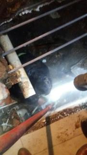 由于施工位置在房屋內,只能靠人力挖掘,熱力管道周邊還有自來水管、燃氣管和電纜,給施工難度增加。同時,為了保證施工安全,期間還多次使用氣體檢測儀檢測燃氣管道是否有漏氣現象,在確保安全后又繼續施工,通過人工挖掘最終找到了管道漏水點。但新的問題產生了,由于漏水主管道是80年代的老舊管道,而且沒有保溫層,管道腐蝕非常嚴重,重新更換管道會延誤供暖時間,考慮到周邊住戶的供熱條件,最后確定先用電焊焊接,再用抱卡緊固的方案,最終工作人員的共同努力下經過40多個小時兩天一夜的連續搶修,在12月8日下午正?;謴凸┡?。文·圖/賈銀春